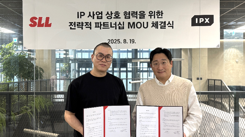 글로벌 IP 파워하우스 SLL(www.sll.co.kr)은 디지털 IP 엔터테인먼트 기업 IPX(구 라인프렌즈, www.ipxcorp.com)와 드라마 IP 기반 제품 기획 개발·판매 및 신사업 공동 추진을 위한 업무협약(MOU)을 체결했다. 이번 협약을 통해 양사는 채널-플랫폼 제휴와 커머스 협력을 바탕으로 제품 기획·개발, 팝업스토어 운영 등 다양한 오프라인 IP 확장 사업을 추진한다.